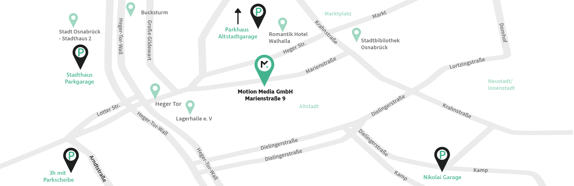 Zum Parken nutzen Sie bitte die umliegenden Parkhäuser oder navigieren Sie in die Arndtstraße (3 Std. mit Parkscheibe).