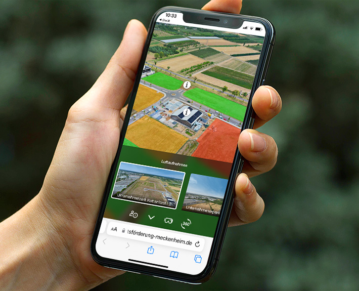 Die Stadtverwaltung Meckenheim, Bereich Wirtschaftsförderung, wünschte sich eine virtuelle 360° Tour für den Unternehmerpark Kottenforst. Das Gebiet wird derzeit neu entwickelt und offeriert nun zahlreiche freie Flächen für ansiedlungswillige Unternehmen.