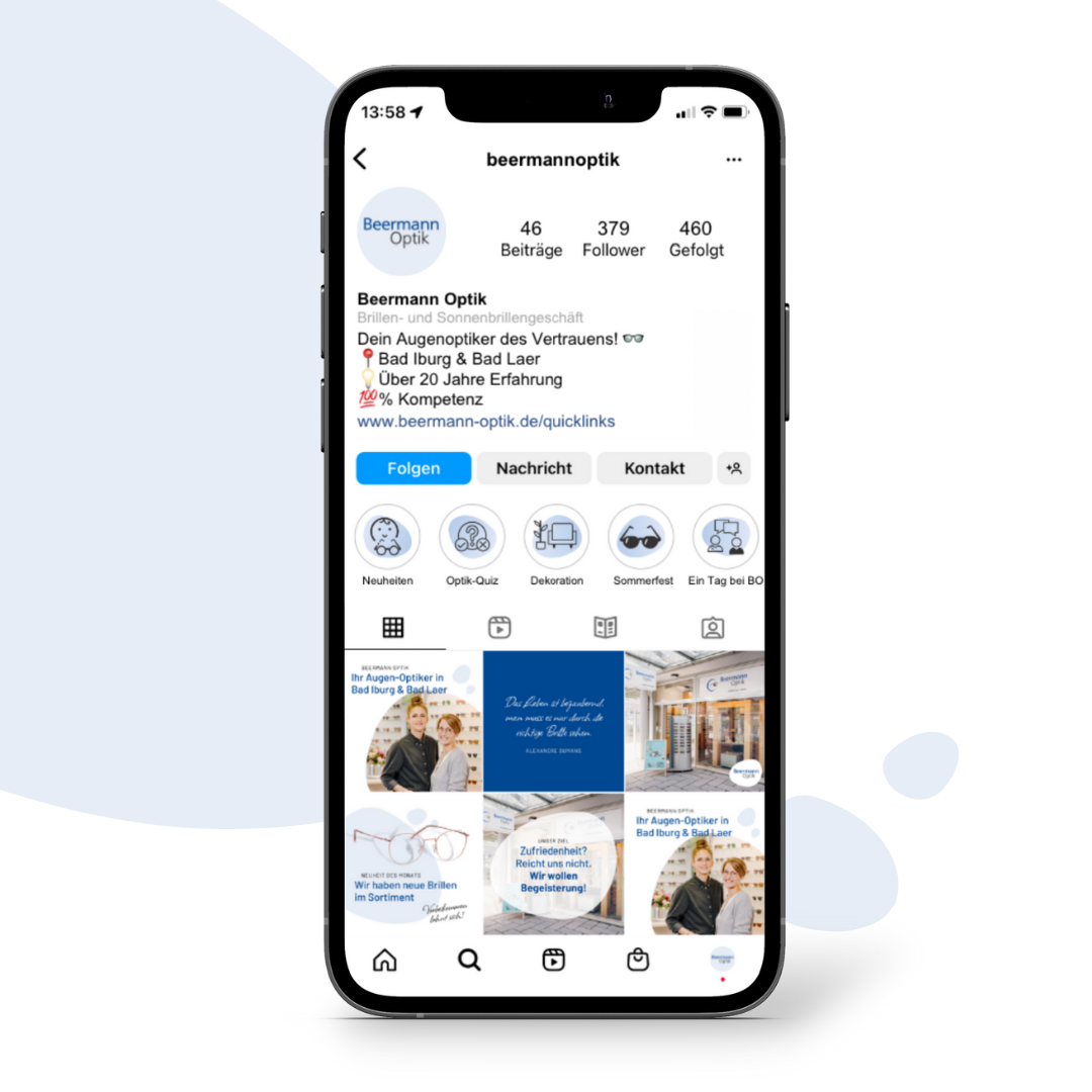 Durch die neuen Social-Media-Kanäle konnte Beermann Optik seine Reichweite deutlich erweitern und gezielt potenzielle Kunden ansprechen. Die einheitliche Gestaltung von Webseite und Social-Media-Profilen stärkt die Markenidentität und sorgt für ein konsistentes Nutzererlebnis. Die regelmäßigen, zielgruppengerechten Beiträge & Reels auf Instagram und Facebook ermöglichen es Beermann Optik, seine Angebote und Dienstleistungen erfolgreich zu präsentieren und eine engere Beziehung zu den Kunden aufzubauen.