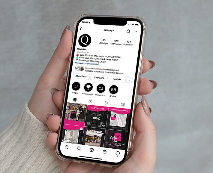 Insgesamt hat mir die Zusammenarbeit mit Motion Media im Projekt wirklich gut gefallen. Für die Neueröffnung unseres MINQAYA Stores in Osnabrück haben wir eine lokal ansässige Agentur gesucht, die uns rundum betreut. Vom Web-Relaunch, über Print-Produkte und unseren Social Media Auftritt auf Facebook und Instagram, hat Motion Media eine rundum gelungene Eröffnungskampagne umgesetzt.