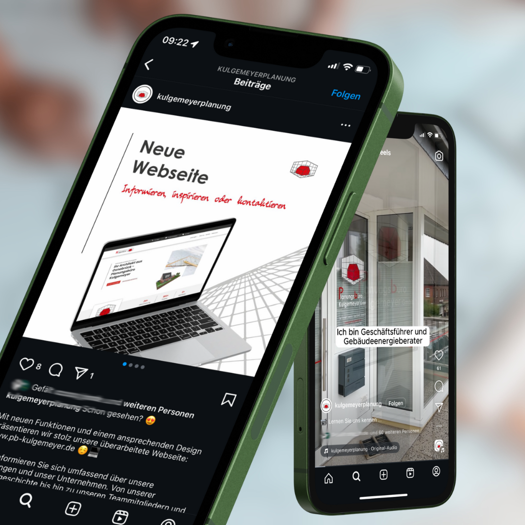 Die neuen Social-Media-Präsenzen auf Instagram und Facebook ermöglichen es dem Planungsbüro Kulgemeyer, potenzielle Kunden effektiv zu erreichen und seine Reichweite zu steigern. Die einheitliche Gestaltung, die sowohl die Webseite als auch die Social-Media-Profile umfasst, stärkt die visuelle Identität des Unternehmens. Durch die zielgruppengerechte Ansprache und die ansprechenden Grafiken konnte das Planungsbüro Kulgemeyer eine solide Basis für zukünftige Marketingaktivitäten in den sozialen Medien schaffen.