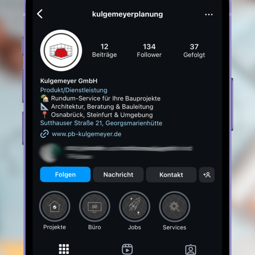 Das Planungsbüro Kulgemeyer stand vor der Herausforderung, seine Präsenz in den sozialen Medien aufzubauen, da bisher keine Accounts auf Plattformen wie Instagram und Facebook existierten. Ziel war es, potenzielle Kunden gezielt anzusprechen und die Online-Reichweite des Unternehmens zu steigern. Eine optisch ansprechende und konsistente Gestaltung der Social-Media-Präsenzen, die im Einklang mit der bestehenden Webseite steht, war dabei besonders wichtig. Zudem sollten passende Highlight-Icons entwickelt werden, um wichtige Informationen schnell und übersichtlich darzustellen.
