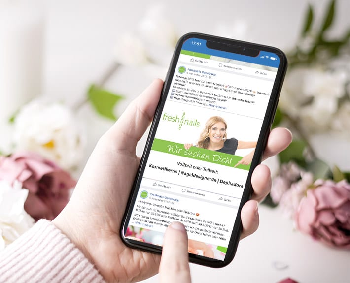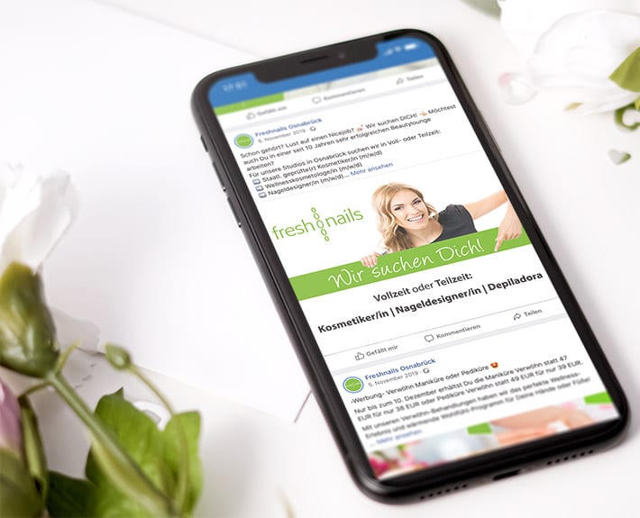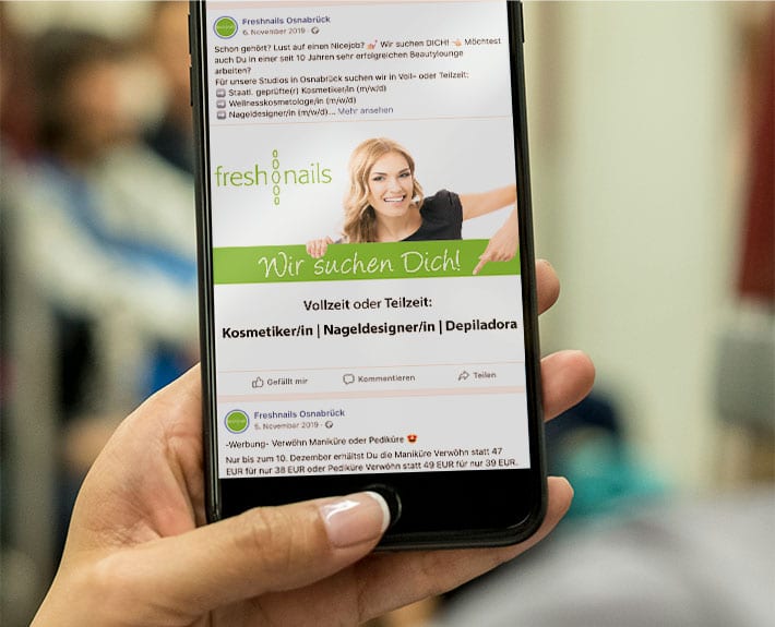 Das Team der freshnails beauty lounge sollte Unterstützung bekommen und mehrere Stellenanzeigen gestaltet und geschaltet, sprich in den entsprechenden Kanälen ausgespielt, werden. Folgende Stellen sollten besetzt werden: