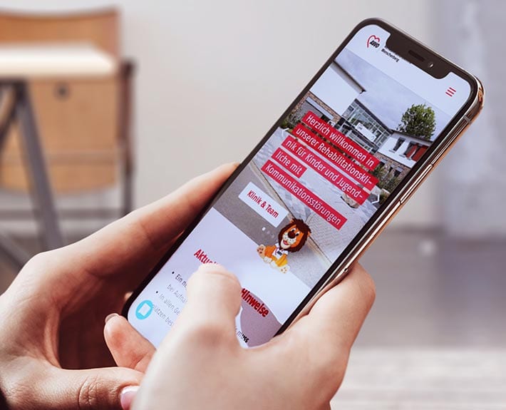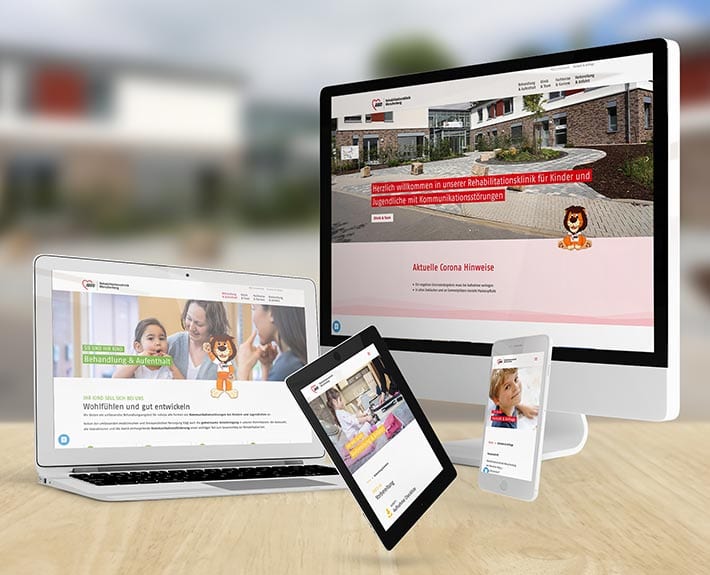 Unterstützend dazu wirkt die Bildsprache, speziell dafür wurde ein Maskottchen, der Löwe, entwickelt, welches wir in verschiedenen Positionen an unterschiedlichen Stellen auf der Webseite platziert haben. Mit authentischen Bildern der Rehaklinik und den Therapiemöglichkeiten vor Ort, haben Interessenten die Möglichkeit sich einen ersten Eindruck zu verschaffen und Vertrauen aufzubauen.
