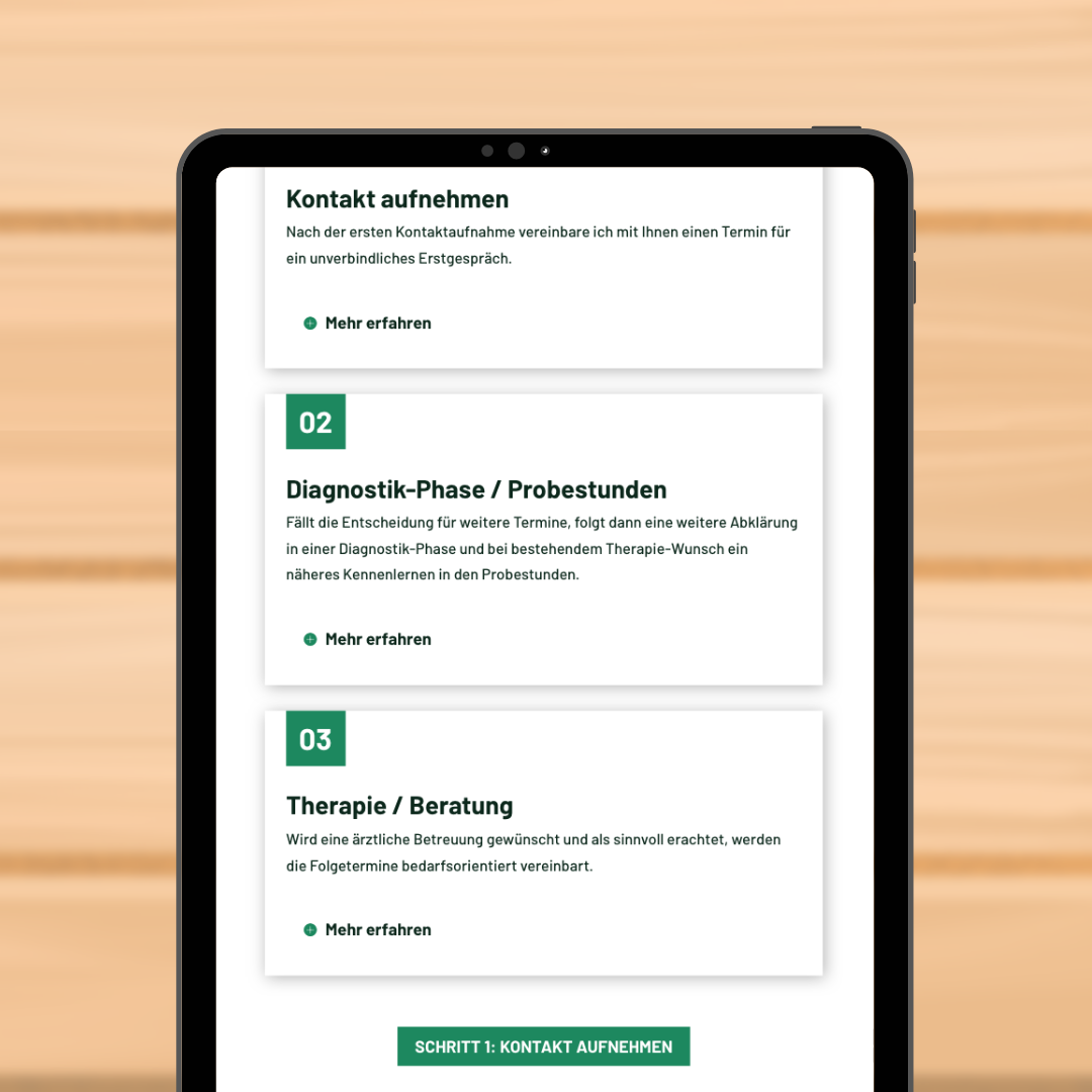 Dr. Wolfram-Patjens hatte bei unserem Kennenlernen noch keine Webseite und benötigte eine neue Online-Präsenz, um ihre Leistungen aus dem Bereich Kinderpsychotherapie online darzustellen. Mit der Webseite sollte die Bedürfnisse der verschiedenen Zielgruppen angesprochen und erfüllt werden. Die Kombination zwischen ärztlicher (kinder- und jugendpsychiatrischer), psychotherapeutischer und Sachverständigen-Praxis (familien- und sozialrechtliche Begutachtungen) zu finden und diese auf der Webseite gut darzustellen, war die Herausforderung. Zudem sollte der Bekanntheitsgrad in Osnabrück und Umgebung erhöht werden, um Therapieanfragen von Eltern oder Kindern und Jugendlichen zu generieren.