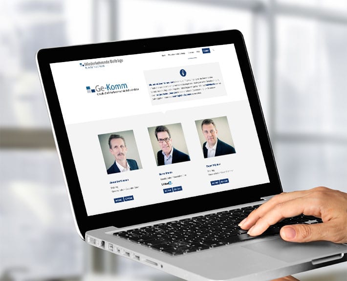 Für die erste Webpräsenz des Unternehmens, sind wir neben der Gestaltung der Webseite auch im Bereich Fotografie tätig geworden, um ersten, echten Content für die Webseite zu haben. Die Gesellschafter legten Wert auf einen seriösen und kompetenten Eindruck. Außerdem sollte durch aussagekräftige Bilder direkt deutlich werden, in welchen Bereichen die Ge-Komm sich auskennt.