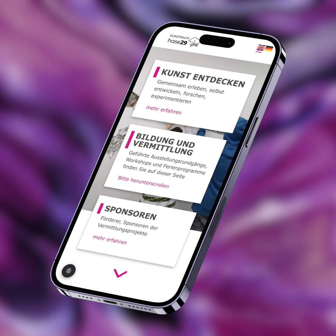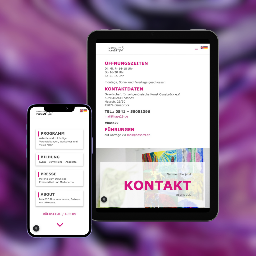 Die Webseite von Hase29 – Gesellschaft für zeitgenössische Kunst e.V. – benötigte eine Überarbeitung, um den vielfältigen Anforderungen des Vereins gerecht zu werden. Die Hauptaufgabe bestand darin, eine moderne und ansprechende Plattform zu schaffen, die sowohl für Mitglieder als auch für Interessenten nützlich ist. Explizite Wünsche des Kunden waren die Integration eines Programmkalenders, die Bereitstellung von Pressemitteilungen und die Darstellung von Mitgliedschaften. Zudem sollte das Design farblich an das bestehende Logo angepasst werden, um den Wiedererkennungswert zu gewährleisten. Die Webseite sollte ebenfalls responsiv sein, um eine optimale Darstellung auf allen Endgeräten zu garantieren. Ein Kontaktformular sollte integriert werden, um die Kommunikation mit dem Verein zu erleichtern.