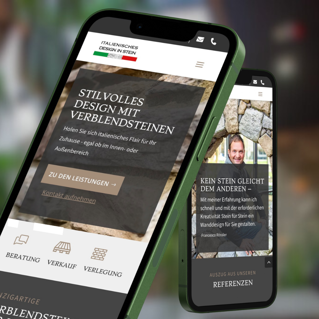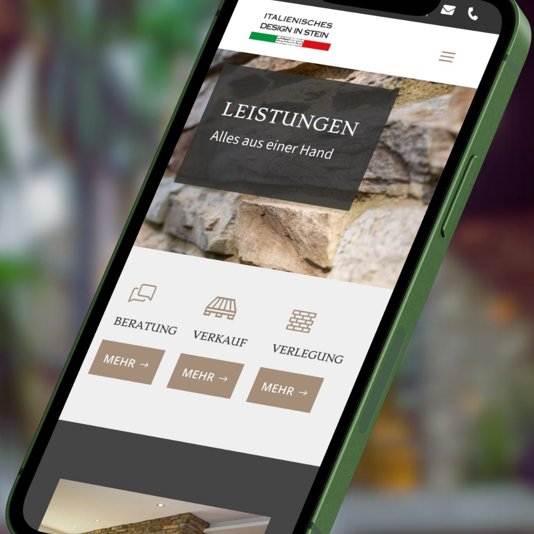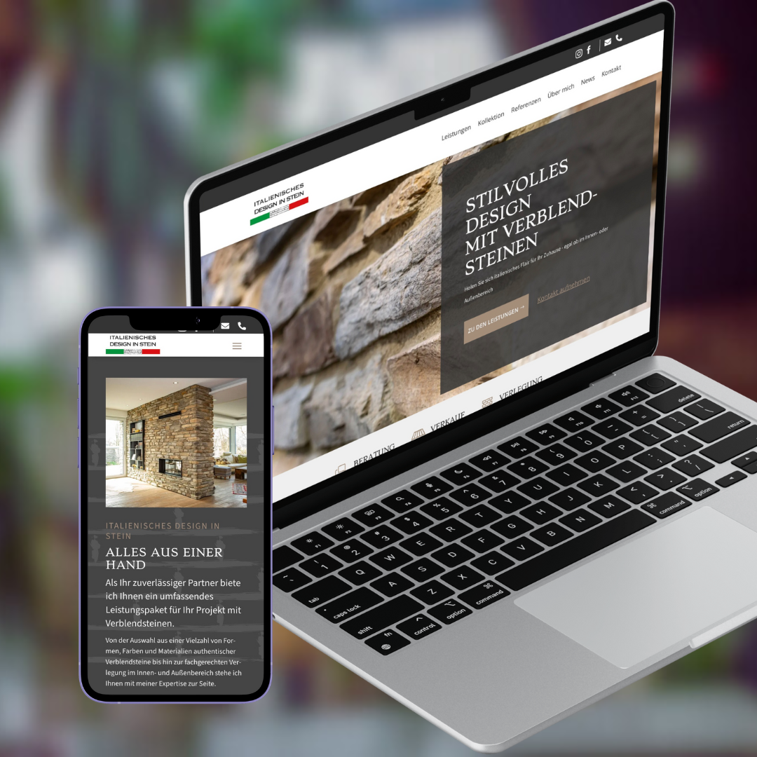 Die Herausforderung bei der Gestaltung der neuen Webseite für Italienisches Design in Stein bestand darin, eine moderne und ästhetisch ansprechende Online-Präsenz zu schaffen, die die Exklusivität und Qualität der angebotenen Produkte und Dienstleistungen widerspiegelt. Die Webseite sollte in WordPress entwickelt werden, mit einem responsiven Design, das auf allen Geräten – von Desktops bis hin zu mobilen Geräten – optimal dargestellt wird. Eine klare und intuitive Benutzerführung war entscheidend, um den Besuchern eine einfache Navigation durch die Kollektion der verschiedenen Verblendsteine zu ermöglichen. Zudem sollten viele Referenzen und Kundenstimmen integriert werden, um das Vertrauen der potenziellen Kunden zu stärken und möglichst viele Anwendungsmöglichkeiten zu präsentieren. Die Webseite sollte in warmen Braun- und Beigetönen gestaltet werden, die die Eleganz und den Chic des Designs unterstreichen.