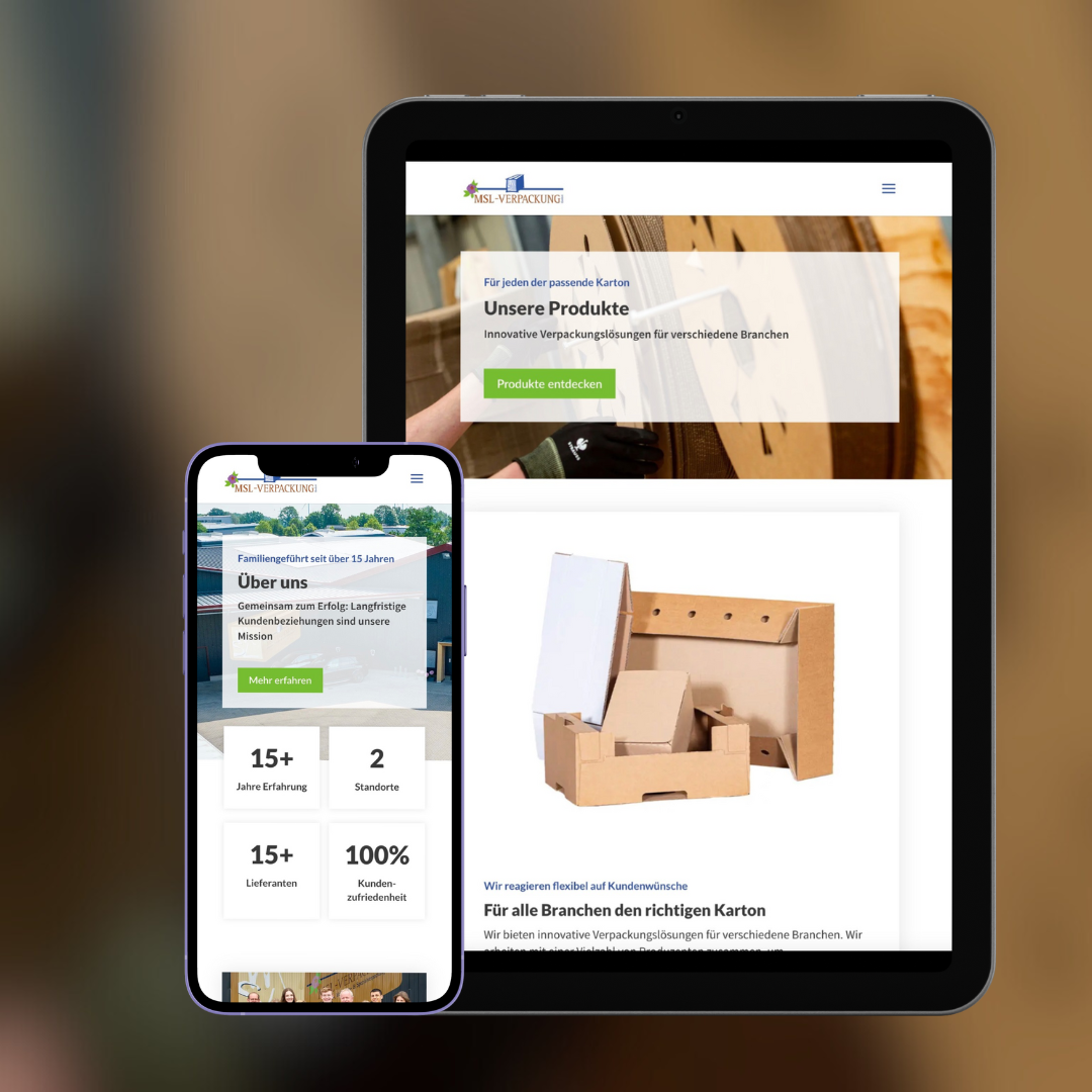 Der Kunde MSL Verpackung wünschte sich eine komplett neue Webseite, die erste seit Unternehmensgründung. Die Aufgabe bestand darin, eine moderne und benutzerfreundliche Online-Präsenz zu entwickeln, die das Unternehmen und seine Produkte optimal präsentiert. Eine der Hauptanforderungen war die farbliche Anpassung des Designs an das bestehende Logo, um ein einheitliches und professionelles Erscheinungsbild zu gewährleisten. Darüber hinaus sollten alle Produkte übersichtlich dargestellt und vor allem auch eigene Fotos integriert werden, um einen authentischen Eindruck zu vermitteln. Da die Webseite keine umfangreichen Texte enthalten sollte, war es wichtig, die Inhalte kurz und prägnant zu halten, während das Layout klar strukturiert und benutzerfreundlich gestaltet werden sollte.