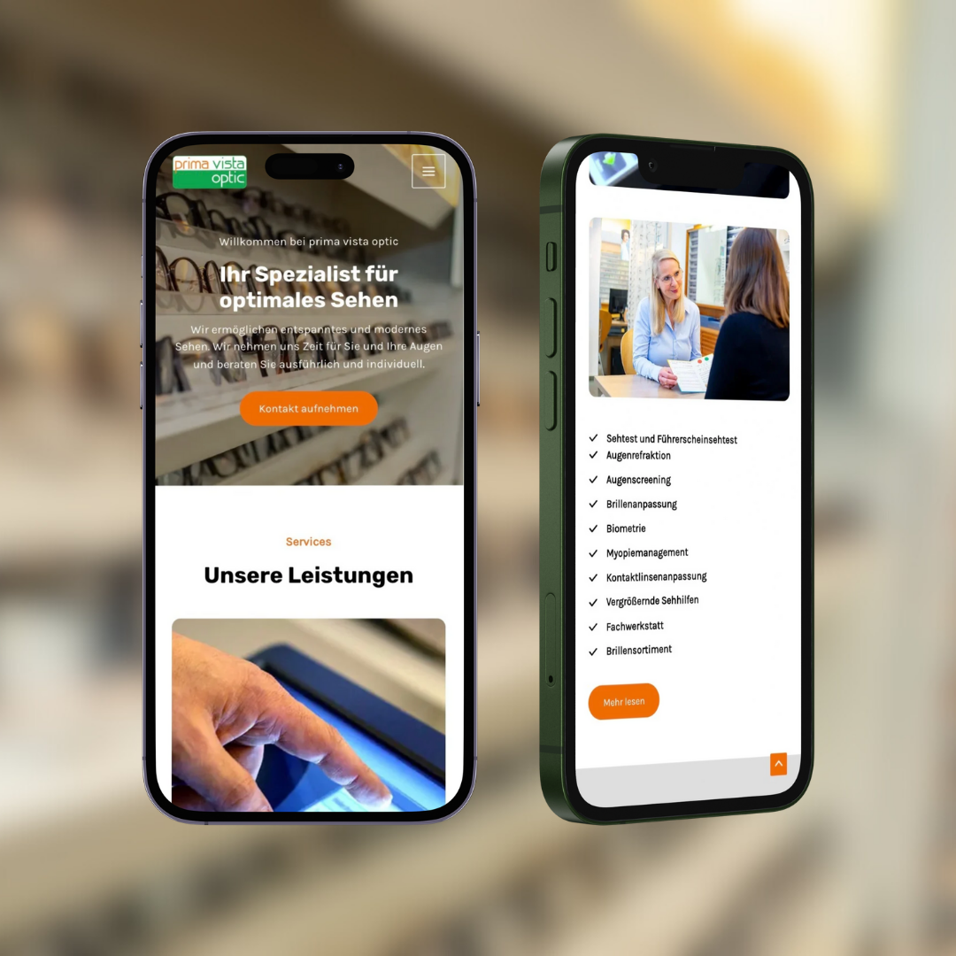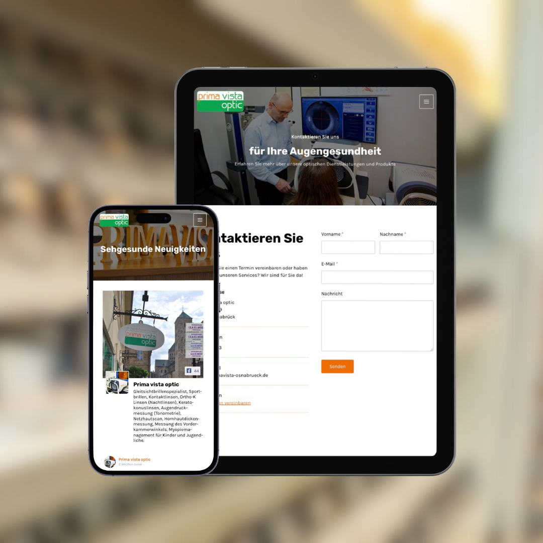 Prima Vista Optic Osnabrück ist ein regionaler Spezialist für gutes Sehen – mit einem starken Fokus auf persönliche Beratung und hochwertige Augenoptik. Der Optiker hatte bisher keine Webseite und wollte im Internet sichtbar werden. Die neue Webseite sollte übersichtlich, schlicht und benutzerfreundlich sein, die Leistungen klar darstellen und einen schnellen Einstieg zur Terminvereinbarung bieten. Gleichzeitig sollte die Seite emotional durch Kundenstimmen gestützt und durch einen eingebundenen Facebook-Feed aktuell gehalten werden.