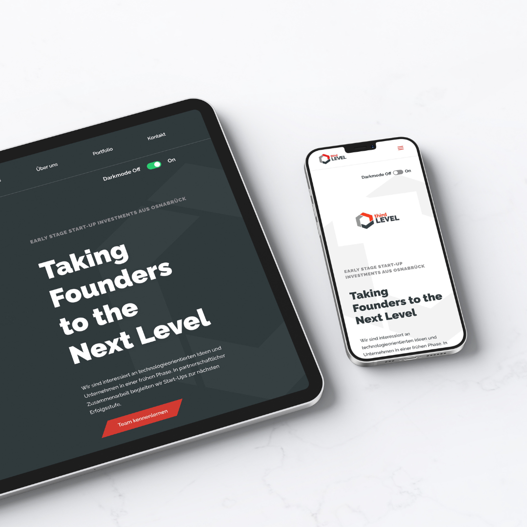 Das Ergebnis ist eine professionelle Webseite, die als effektive Web-Visitenkarte für Third Level dient. Sie hinterlässt einen positiven ersten Eindruck und unterstützt den Netzwerkaufbau sowie die Etablierung des Unternehmens. Die Social Media Integration und das einheitliche Corporate Design tragen zur Konsistenz und einem hohen Wiedererkennungswert bei. Durch die verschiedenen Kontaktmöglichkeiten und die Funktion zur Einreichung von Bewerbungen wird die Interaktion mit Start-Ups erleichtert. Der Darkmode verbessert die Nutzerfreundlichkeit und Lesbarkeit, insbesondere in dunklen Umgebungen. Insgesamt stärkt die neue Webseite die Online-Präsenz von Third Level und bietet eine verbesserte Nutzererfahrung.