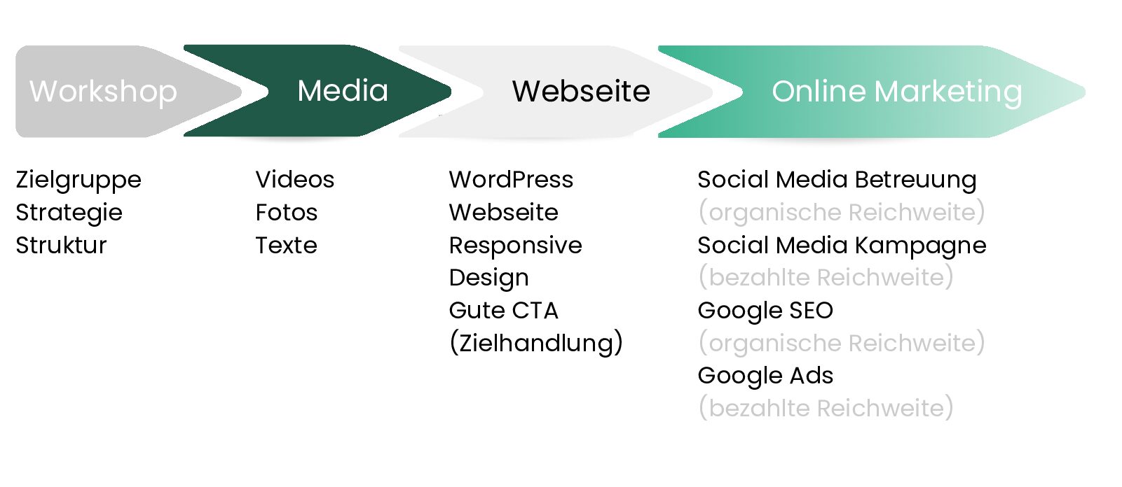 Anschließend folgt ein Mediatermin mit Foto/Video. Danach erstellen wir Ihre Webseite, und optimieren diese für Google SEO (optional).